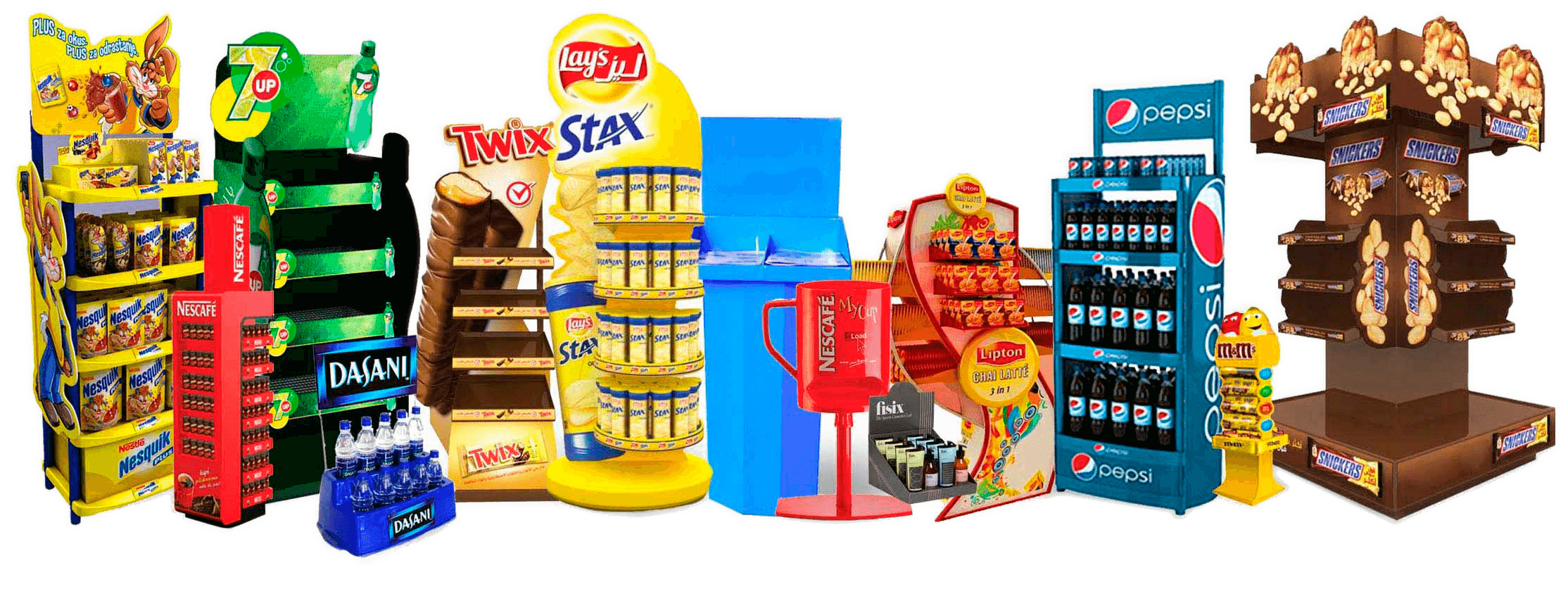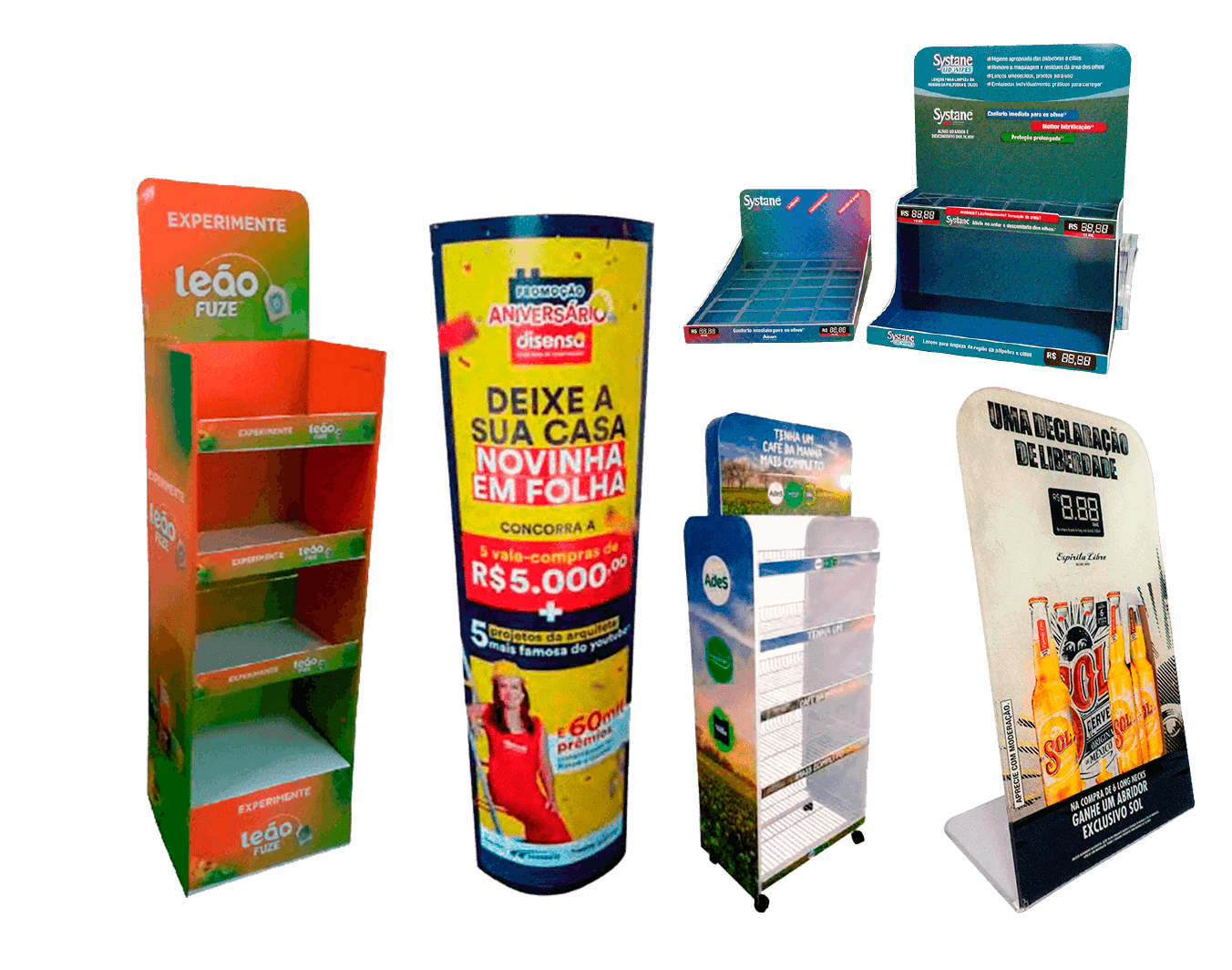 Também conhecidos como expositores, os displays de chão são ideais para destacar produtos em promoção e dar mais mobilidade para a marca no ponto de venda. São excelentes peças de visual merchandising para incentivar o consumo imediato.