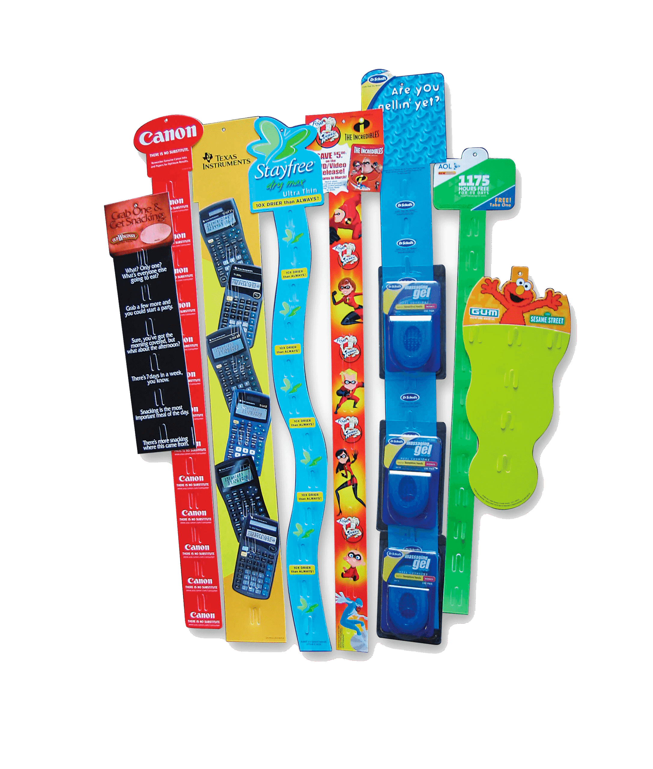 Elas são pequenas peças retas ou dobradas em L colocadas junto ao produto no ponto de venda. A Faixa de Gôndola visa atrair a atenção do consumidor para aquilo que está sendo exposto e diferenciar a marca entre seus concorrentes.